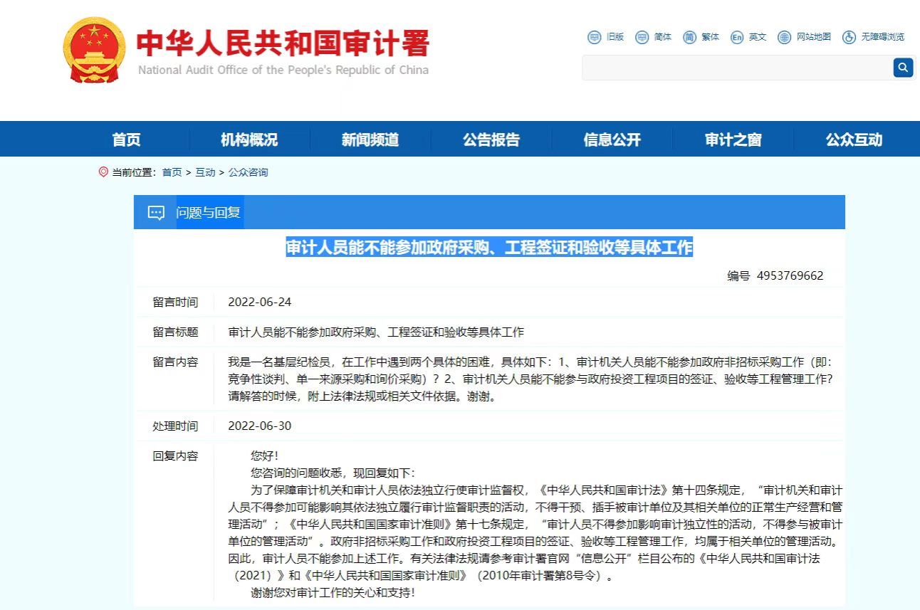 根据《中华人民共和国审计法》〔2021〕第十四条和《中华人民共和国国家审计准则》〔2010〕第十七条规定,审计人员不能参加被审计单位的管理活动。