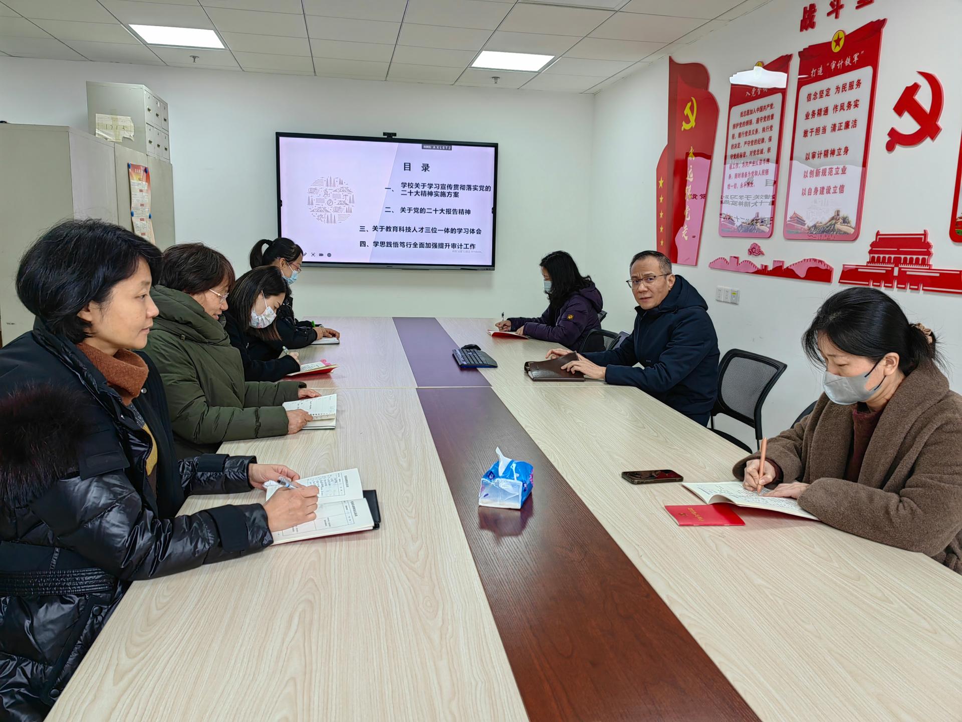 支部全体党员深入思考、畅谈心得、热烈讨论,纷纷表示将以持续深入学习贯彻党的二十大精神为契机,深刻领悟过去五年工作和新时代十年伟大变革的重大意义,牢牢把握中国式现代化特征要求,深刻理解习近平新时代中国特色社会主义思想的世界观和方法论,坚持好和运用好贯穿其中的立场观点方法,坚持用习近平新时代中国特色社会主义思想武装头脑,进一步增强法制观念,坚决做到学法、守法、用法,依法履行审计职责,将学习成果转化为工作新成效,续写学校审计工作新篇章。